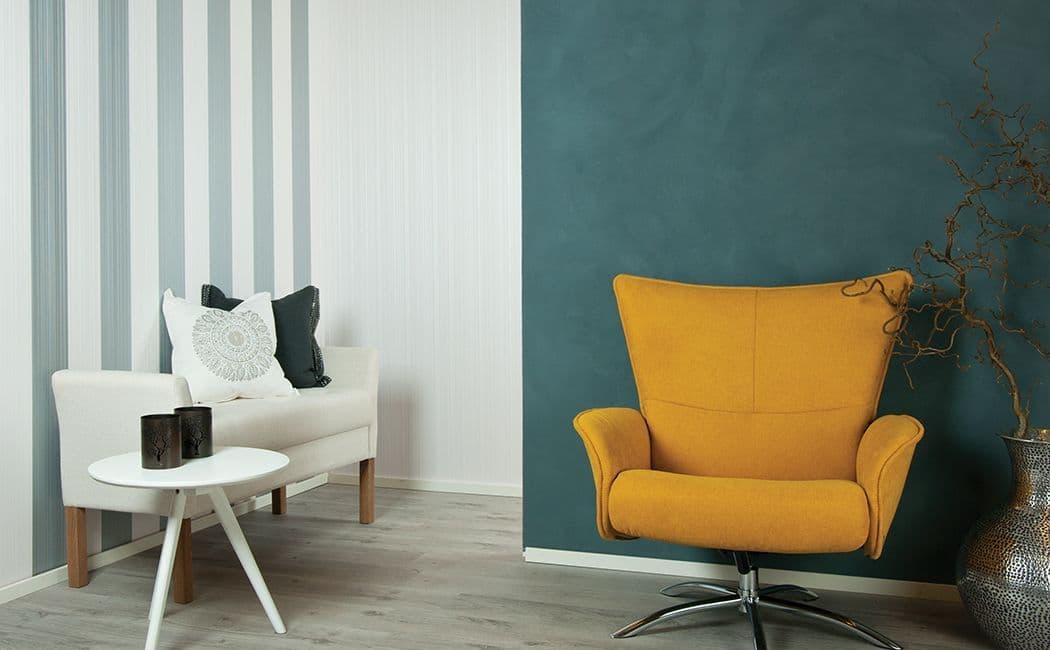 Bilde: FORESTIA Walls4You er ferdigtapetserte veggplater i spon. Det finnes et bredt utvalg og låsesystemet sikrer montering. Med disse veggplatene trenger man ikke tenke på sparkling, pussing og tapetsering. (Foto: Byggma)